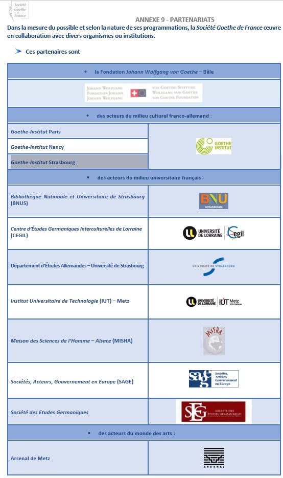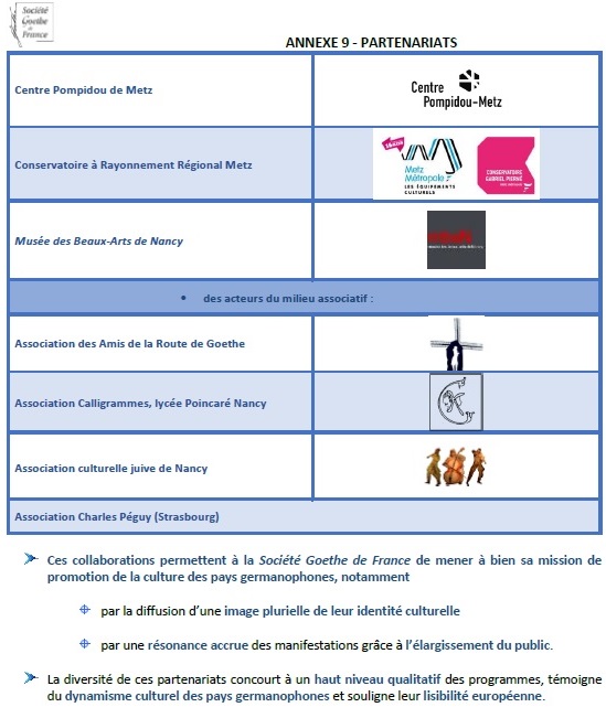 Ces collaborations permettent à la Société Goethe de France de mener à bien sa mission de promotion de la culture des pays germanophones, notamment